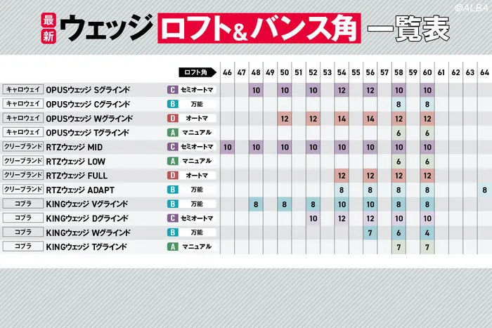 最新ウェッジのロフト&バンスを一覧表でまとめみた! 山下は48・52・58度、アナタは何度?