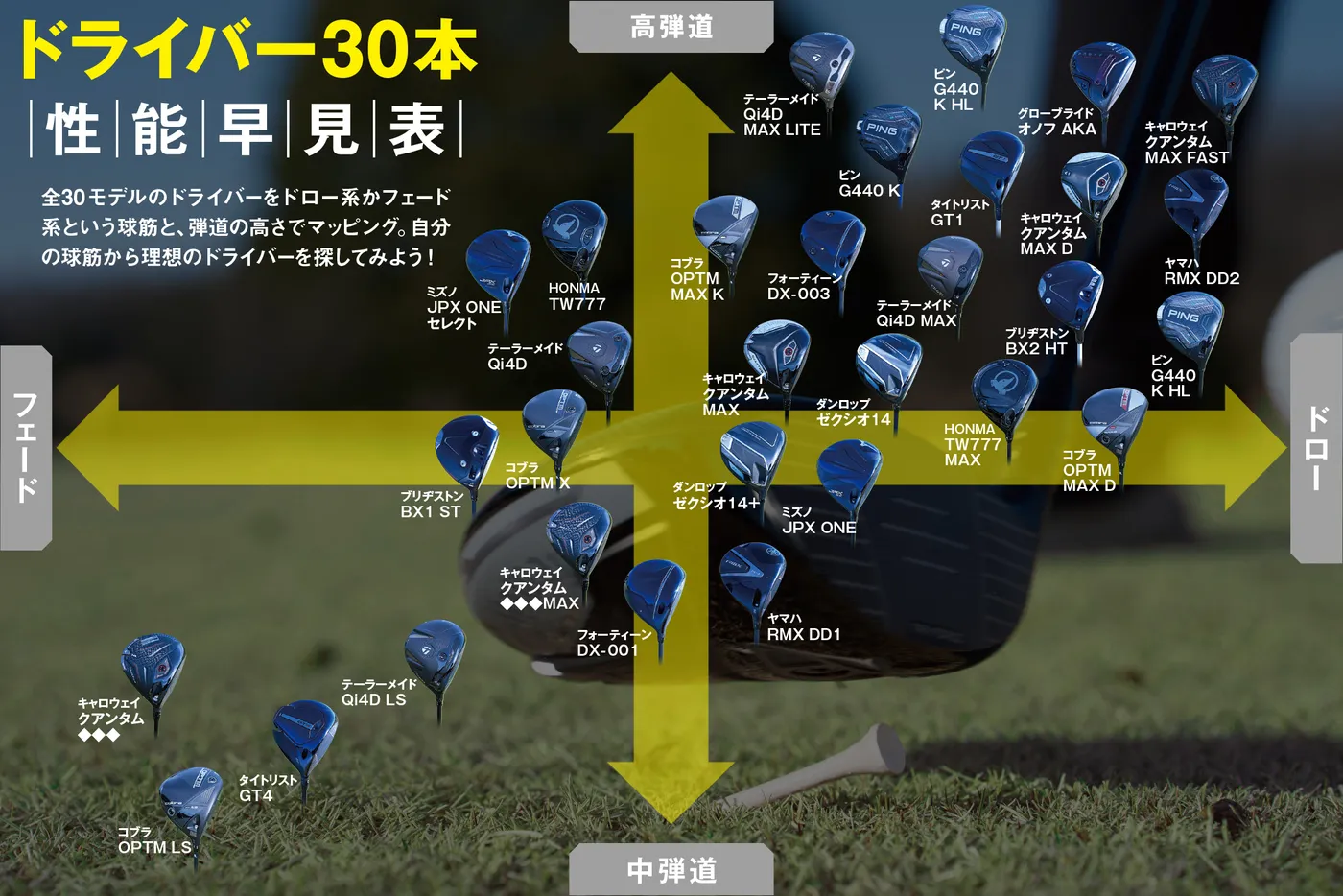 [写真] ピン、テーラー、キャロウェイ、ゼクシオ、ミズノ……最新ドライバー30本の性能早見表を作ってみた!