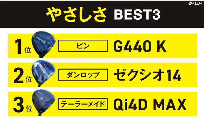 [写真] 最新ドライバー30本の『やさしさ&上がりやすさ』ベスト3を発表 売り上げ1位『G440 K』、3位『Qi4D MAX』がランクイン