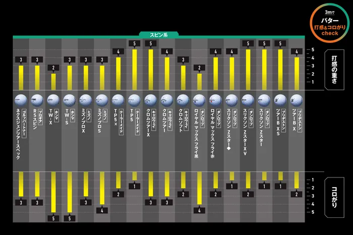 [写真] 31種のボールをプロが徹底試打&評価 スピン系とディスタンス系で“コロがり”も打感の“重さ”も真逆の結果に!