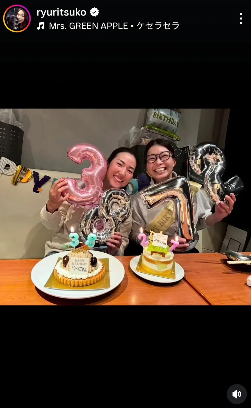 笠りつ子が「レベル38」に到達 サプライズの誕生日パーティーで、渋野日向子の27歳も同時にお祝い