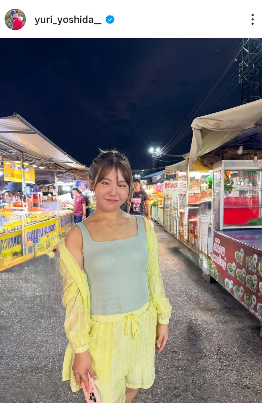 にぎやかなマーケットを楽しむ吉田優利【写真:吉田優利のInstagram(@yuri_yoshida__)より】