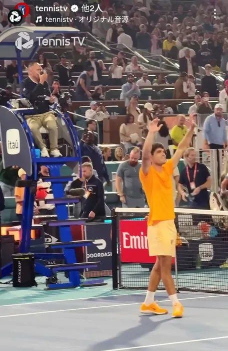 観客の歓声にこたえるカルロス・アルカラス【写真:テニスTVの公式Instagram(@tennistv)より】
