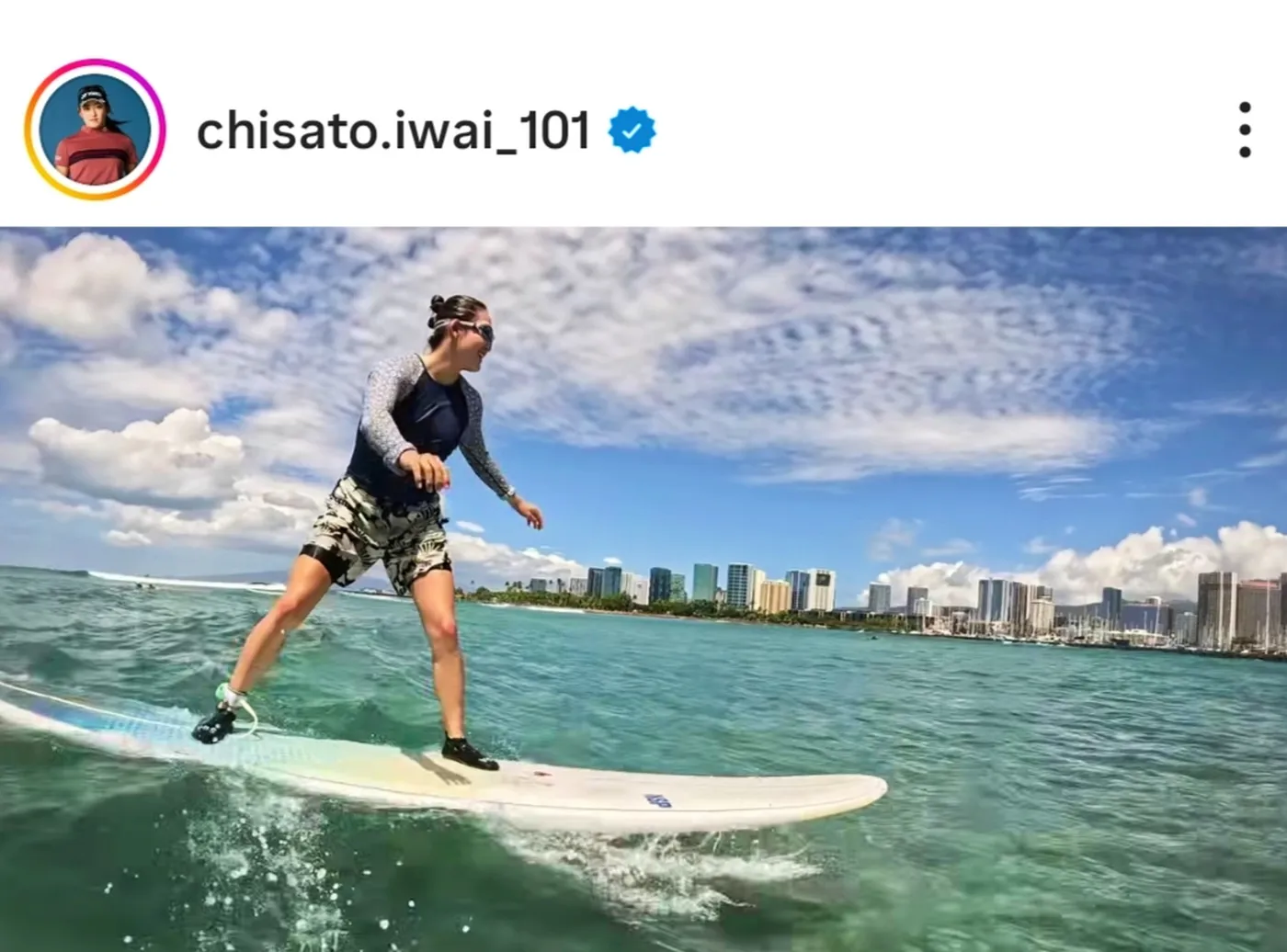 岩井千怜がハワイでサーフィンに初挑戦 難なく乗りこなす姿に「体幹が素晴らしいです」「とても初めてとは思えませんね」と絶賛の嵐!