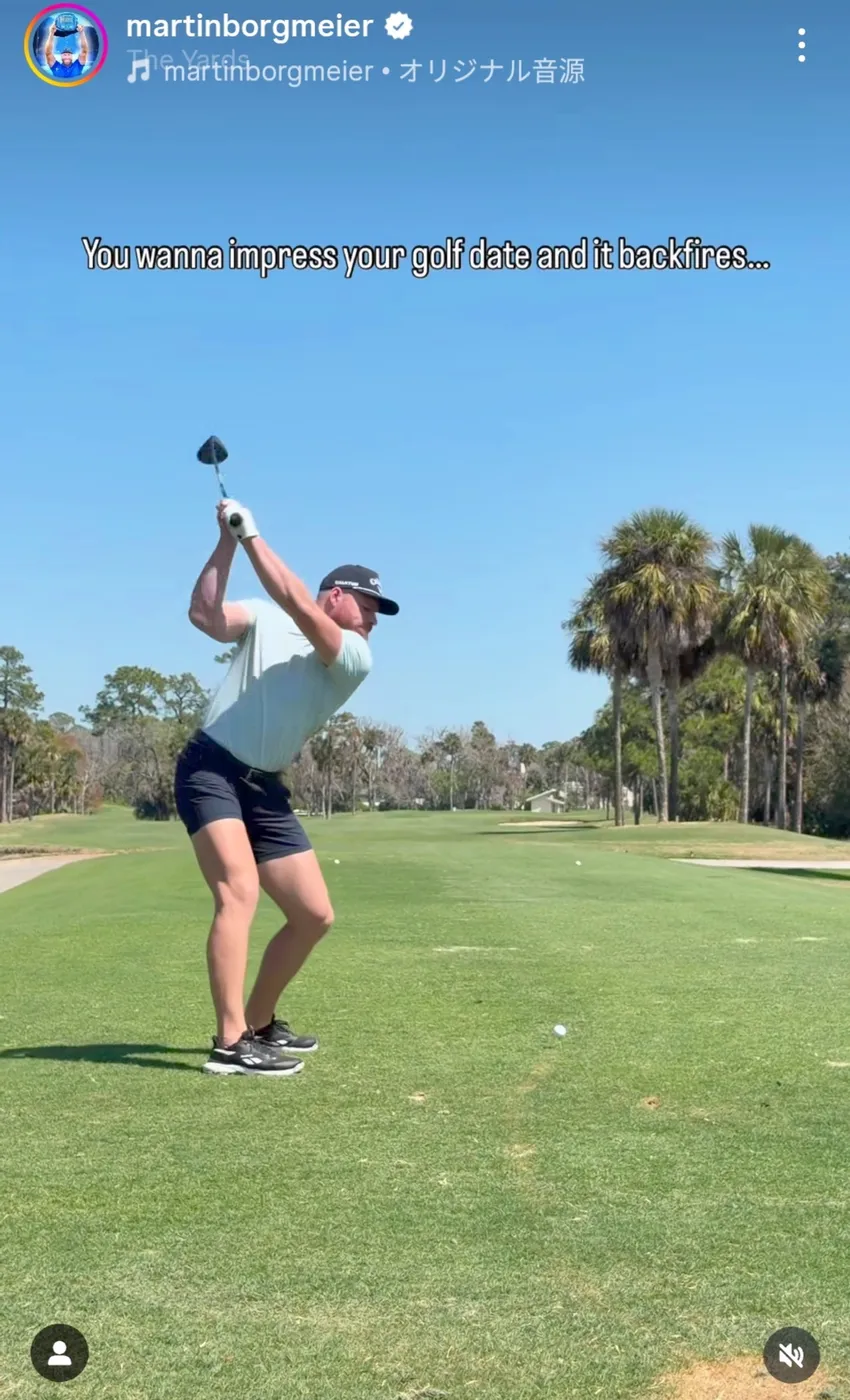 渾身の一打、ボールの行方は?【写真:マーティン・ボルグマイヤーのInstagram(@martinborgmeier)より】