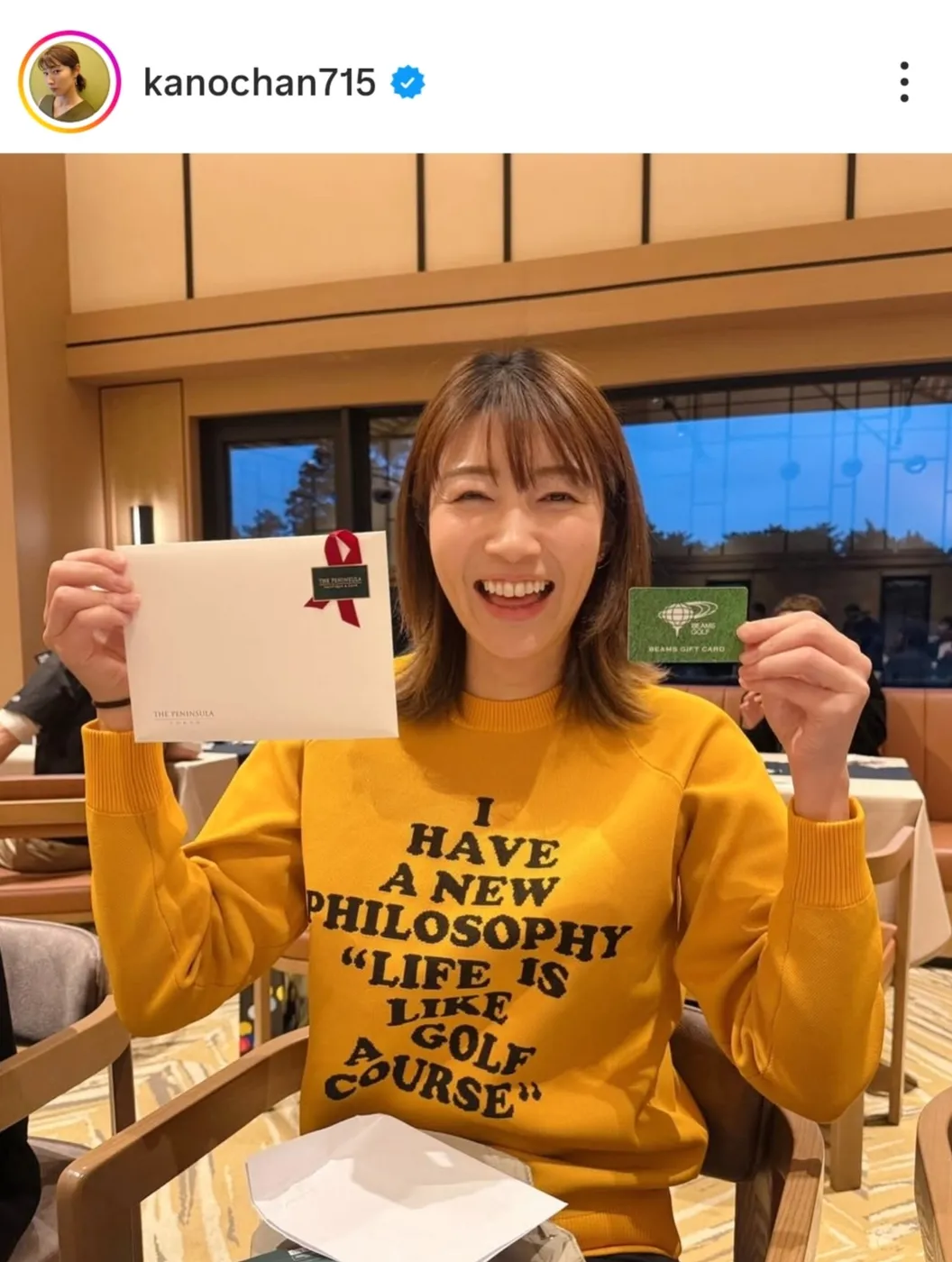 レディースで優勝、会心の笑顔を見せる狩野舞子【写真:狩野舞子のInstagram(@kanochan715)より】