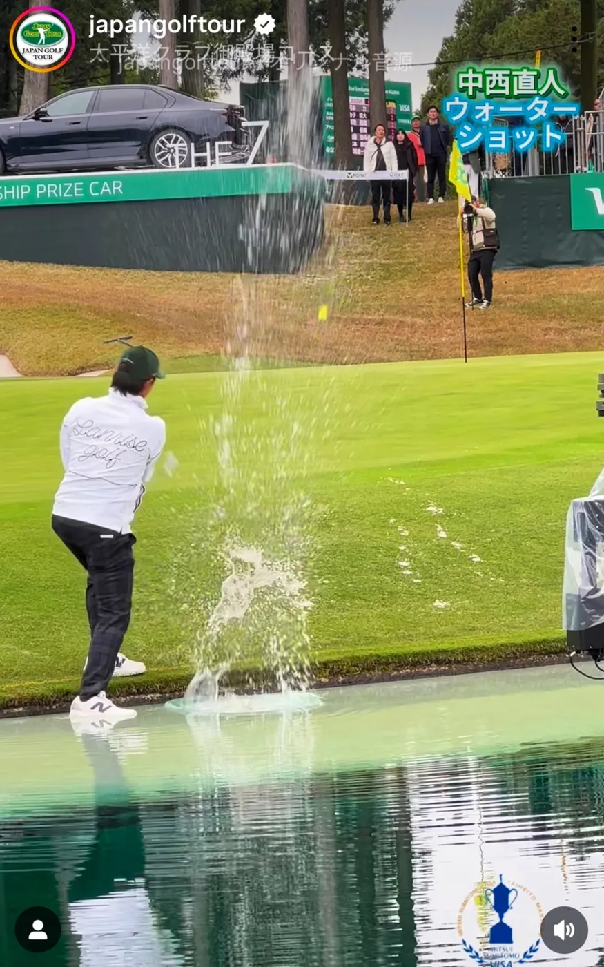 中西直人が大会初日の最終ホールで見せた神業! 完璧なウォーターショットをファンも大絶賛