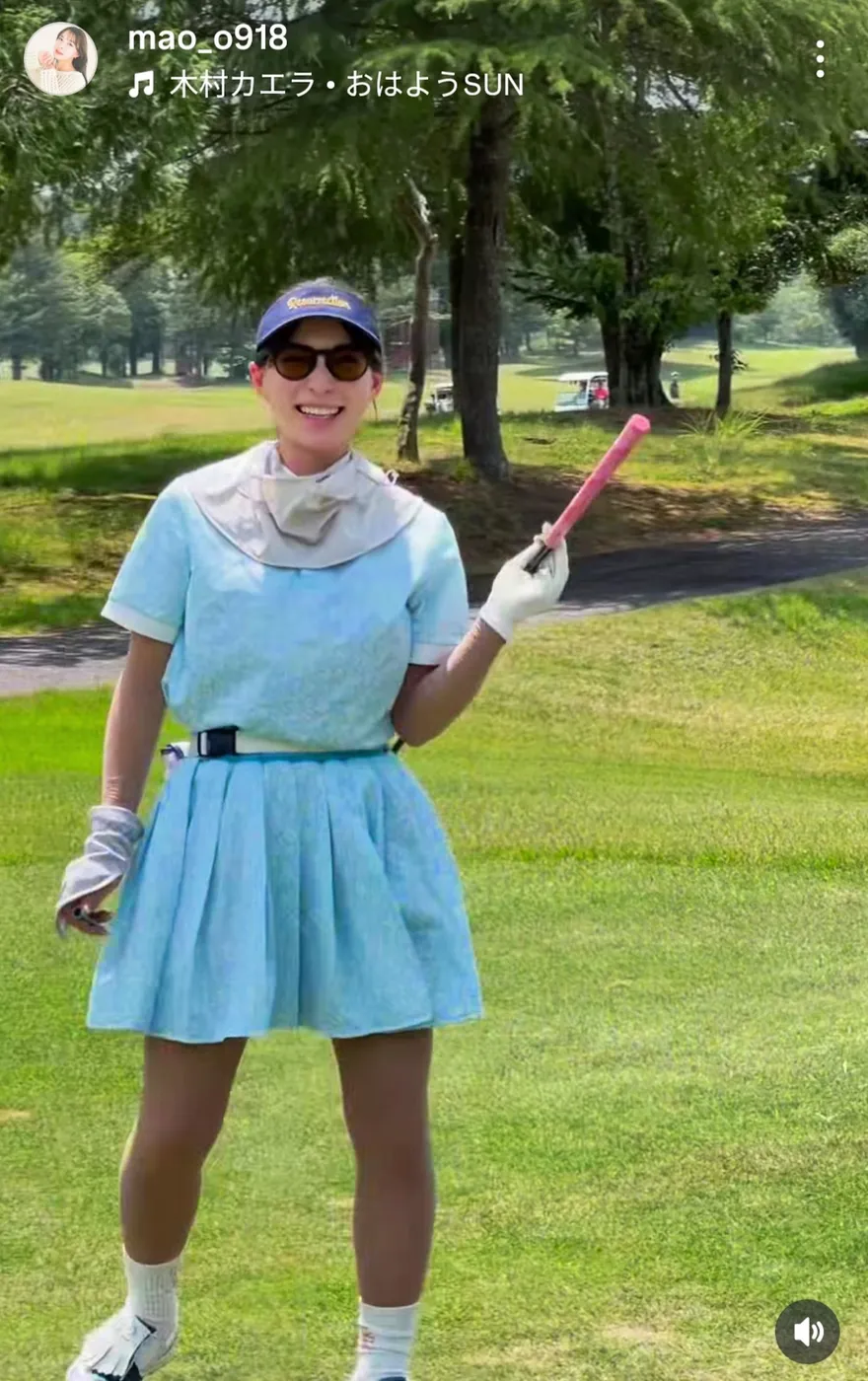 ベストスコア72の元HKT48、ミニスカコーデでナイスショット3連発! クラブもウェアも水色で「可愛いでしょ~」
