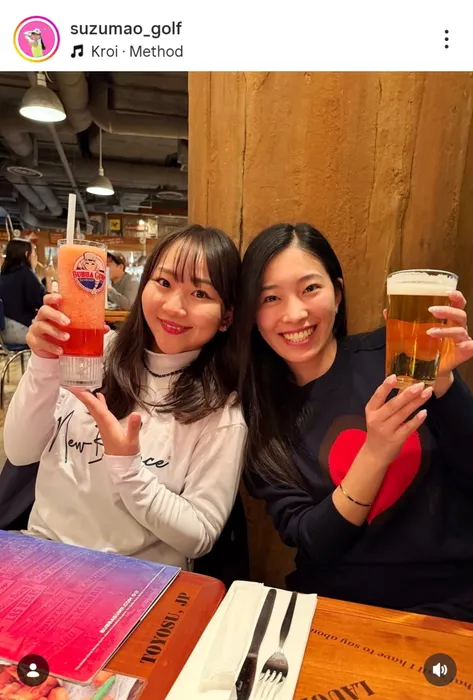 友人とディナーを楽しむ鈴木真緒【写真:鈴木真緒のInstagram(@suzumao_golf)より】