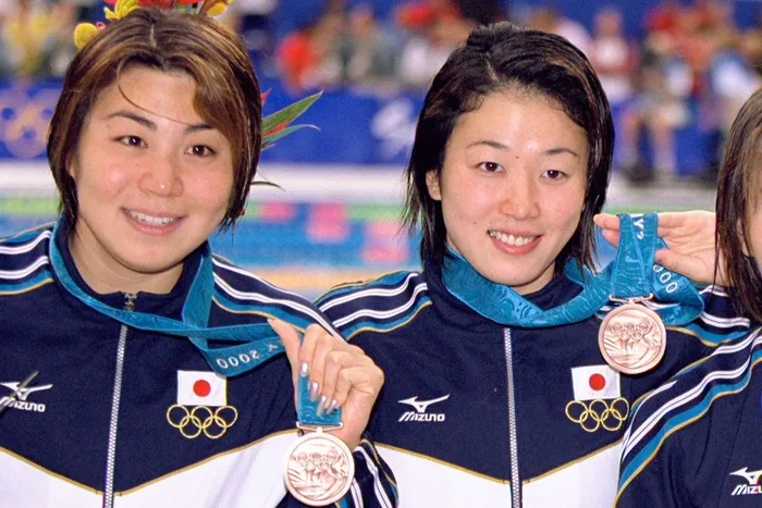 2000年シドニーオリンピック4×100mメドレーリレーで銅メダルに輝いた田中雅美(写真右) (撮影:GettyImages)