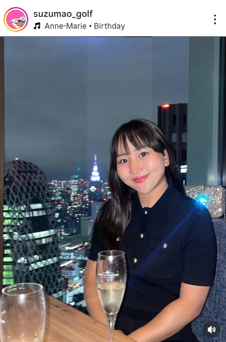 景色の良いレストランで誕生日を祝う鈴木真緒【写真:鈴木真緒のInstagram(@suzumao_golf)より】