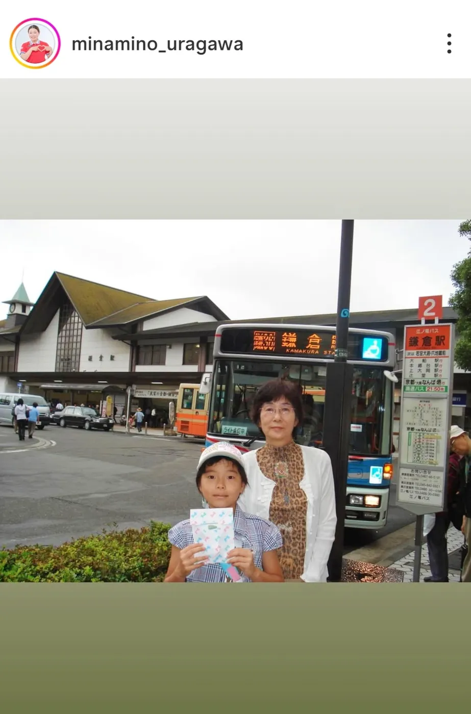 お祖母ちゃんと鎌倉を訪ねた幼少期の勝みなみ【写真:勝みなみの母親のInstagram(@minamino_uragawa)より】