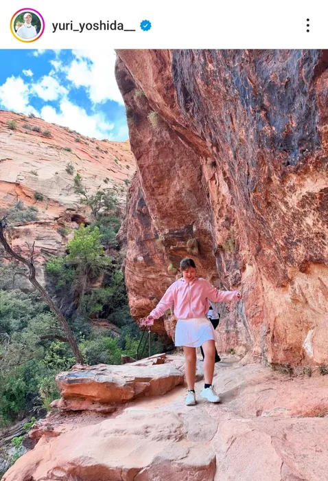 吉田優利が白いミニスカートでザイオン国立公園を満喫! 次戦に向けてリフレッシュ