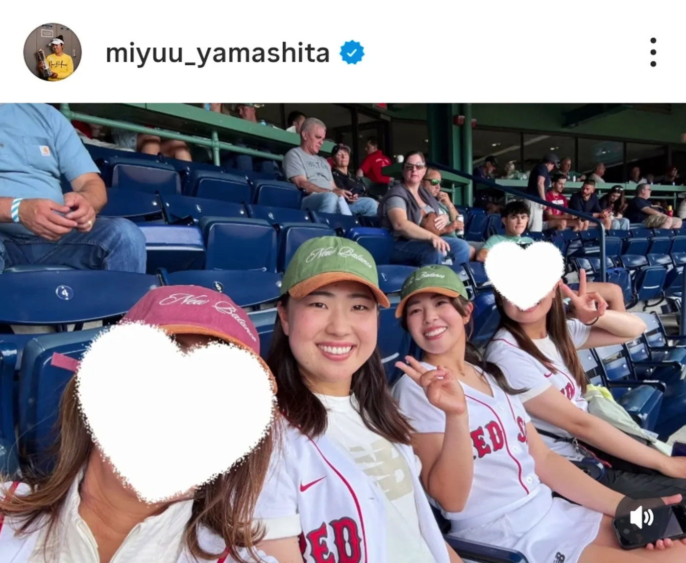 山下美夢有&竹田麗央の「チーム山田」、MLBレッドソックスをユニフォーム姿で応援! 「世界制覇をたくらむすごい2人」