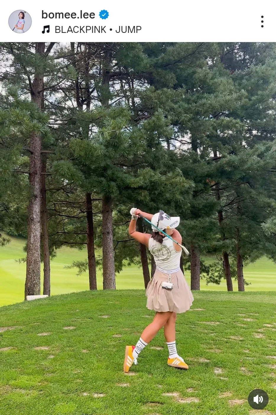 ミニスカがフワリ! イ・ボミが美しいスイングを披露 「参考になります」とファンも絶賛