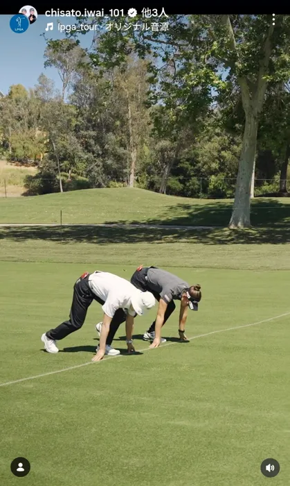 ラスベガスで開脚ストレッチ! 原英莉花の自由すぎるオフショットに反響「さすがです」「すごーい柔軟」
