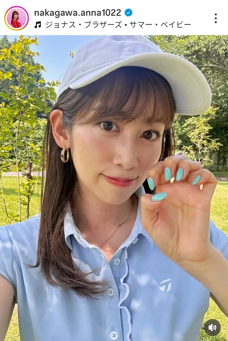 フリーアナの中川安奈が爽やかなミニスカートコーデで夏のゴルフを大満喫 「やっぱりゴルフ楽しすぎるっ」