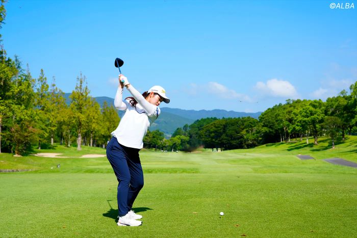 2025年12月9日 (火) 17時00分41身長156㎝、最長382ヤード! 柳井紗奈はわざと右ワキを空けた「オーバースイングで飛ばします」