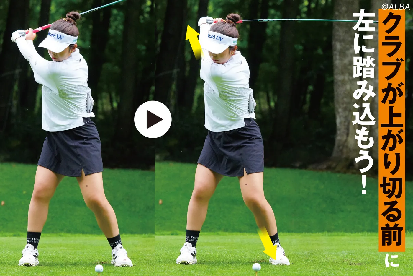 山下美夢有はトップで左足体重!? クラブが上がり切る前に左に踏み込むと飛ぶ!