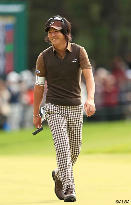 今日は秋らしくブラウン系でまとめた石川、ようやくエンジン始動で19位タイ浮上 (撮影:米山聡明)