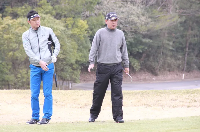 アプローチの調整を行う、高橋竜彦と小林正則