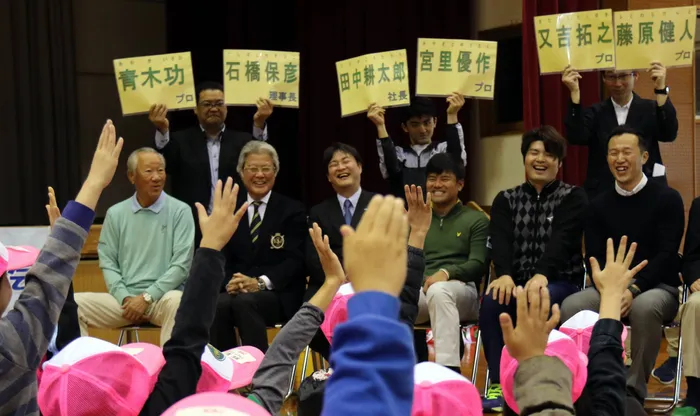 青木功と宮里優作が恩納村を訪問、スナッグゴルフ用具を寄贈