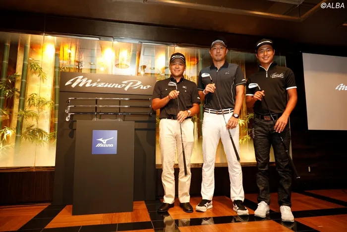 「ミズノプロ」の発表会に出席した、左から手嶋多一、小林正則、小鯛竜也 (撮影:ALBA)