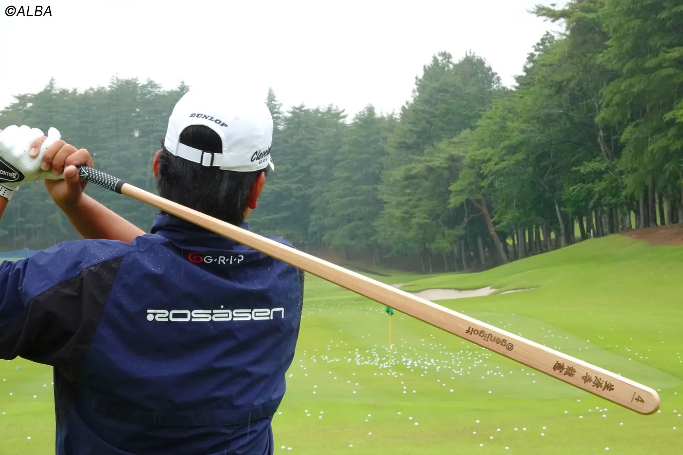 “世界にひとつ”の「かっこいい」素振り棒を発見! 方向性、飛距離アップの強い味方に?【男子ツアーの“ヒトネタ”】