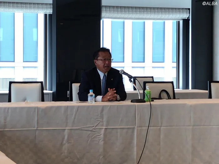 倉本会長が定例理事会について発表を行った (撮影:ALBA)