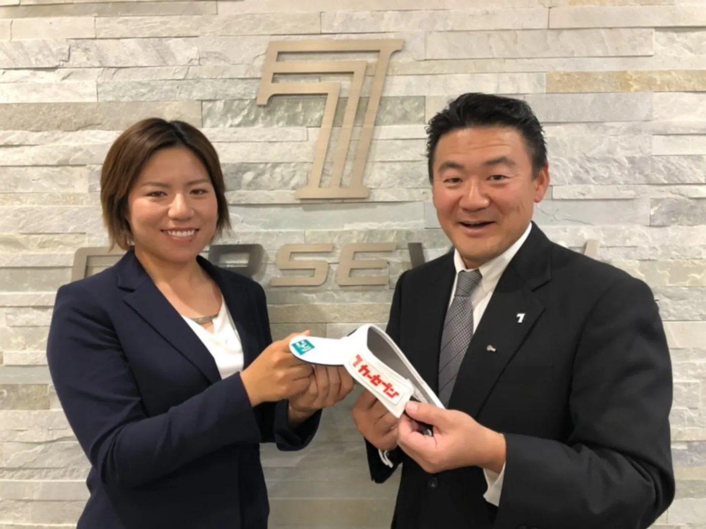 岡山絵里(左)とカーセブンディベロプメント代表取締役の井上貴之氏
