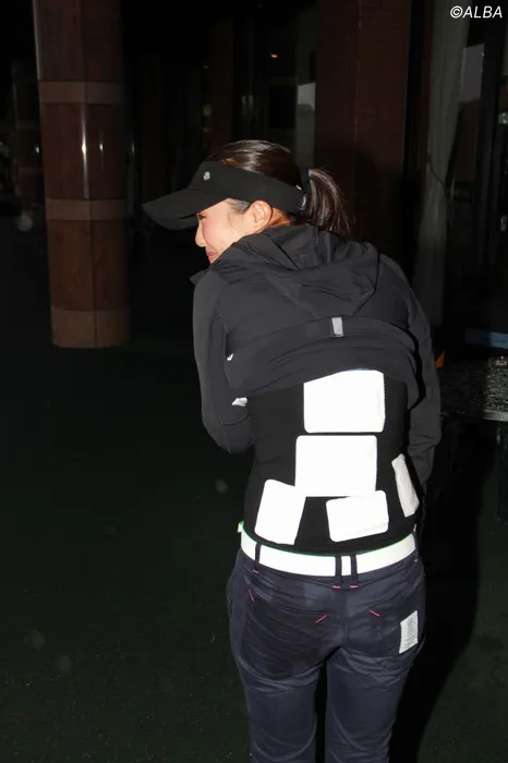 背中に使い捨てカイロを5枚貼り寒さをしのいだ平野 (撮影:ALBA)