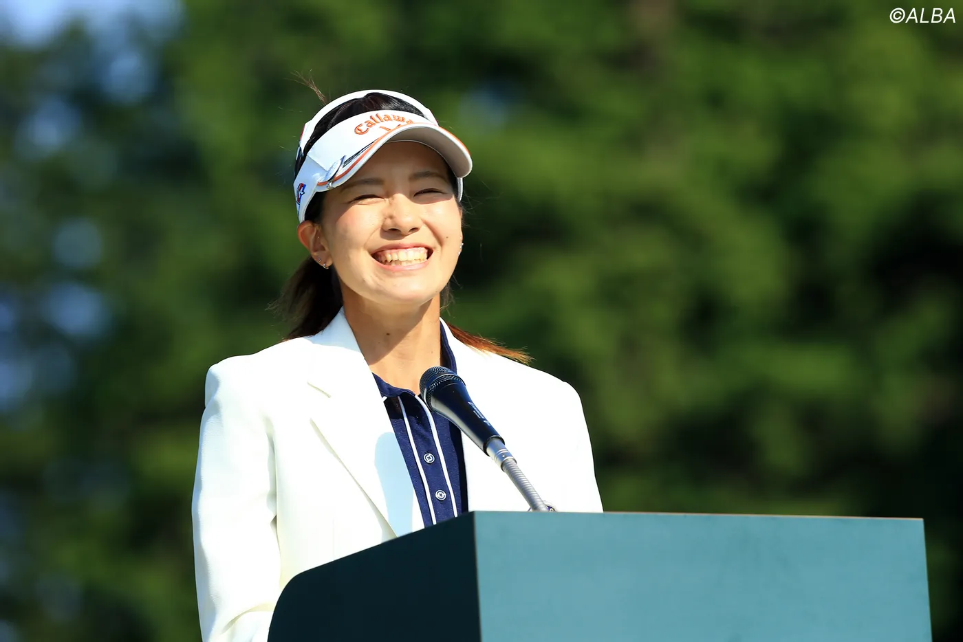 表彰式で最高の笑顔をギャラリーに見せた藤田光里、賞金ランクも3位に浮上! (撮影:福田文平)