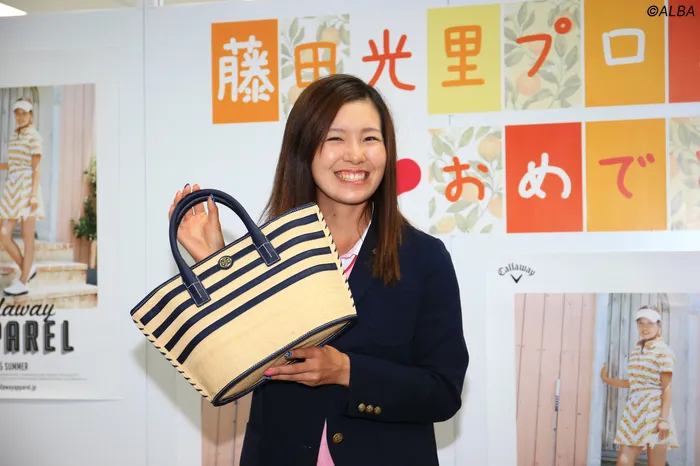 個人3冠の佐久間朱莉は豪華ドレスで登場 師匠・ジャンボからの“ムチ”が糧に「来年はメジャー制覇を」