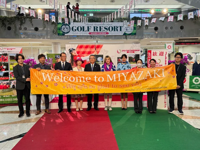 宮崎牛も“お出迎え” 前年覇者・桑木志帆が歓迎セレモニーで笑顔「連覇を目指して頑張りたい」