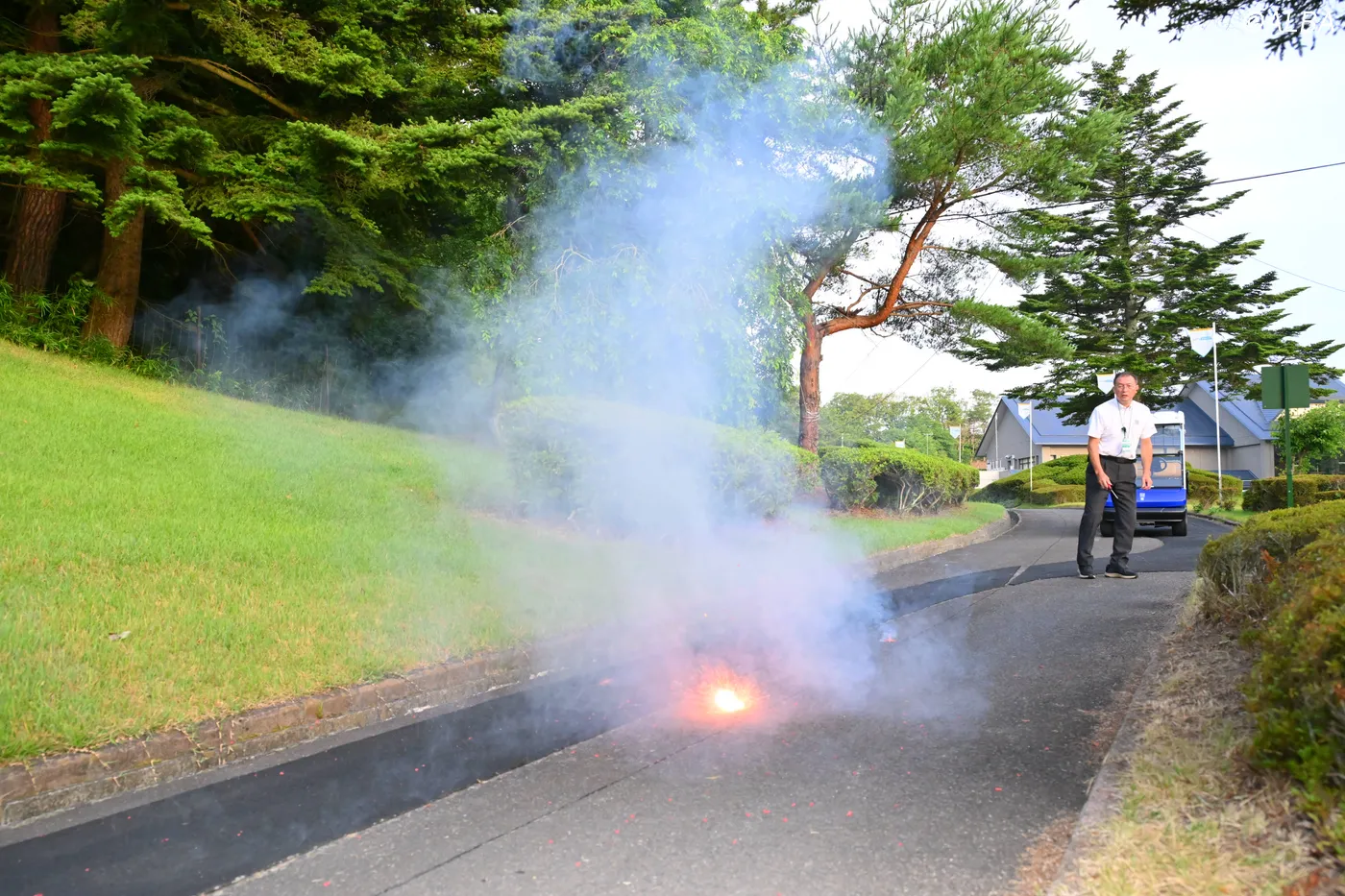 第1ラウンド開始前には爆竹などで対策。最善を尽くし、無観客大会がスタートした。 (撮影:佐々木啓)