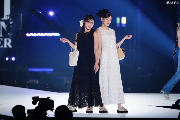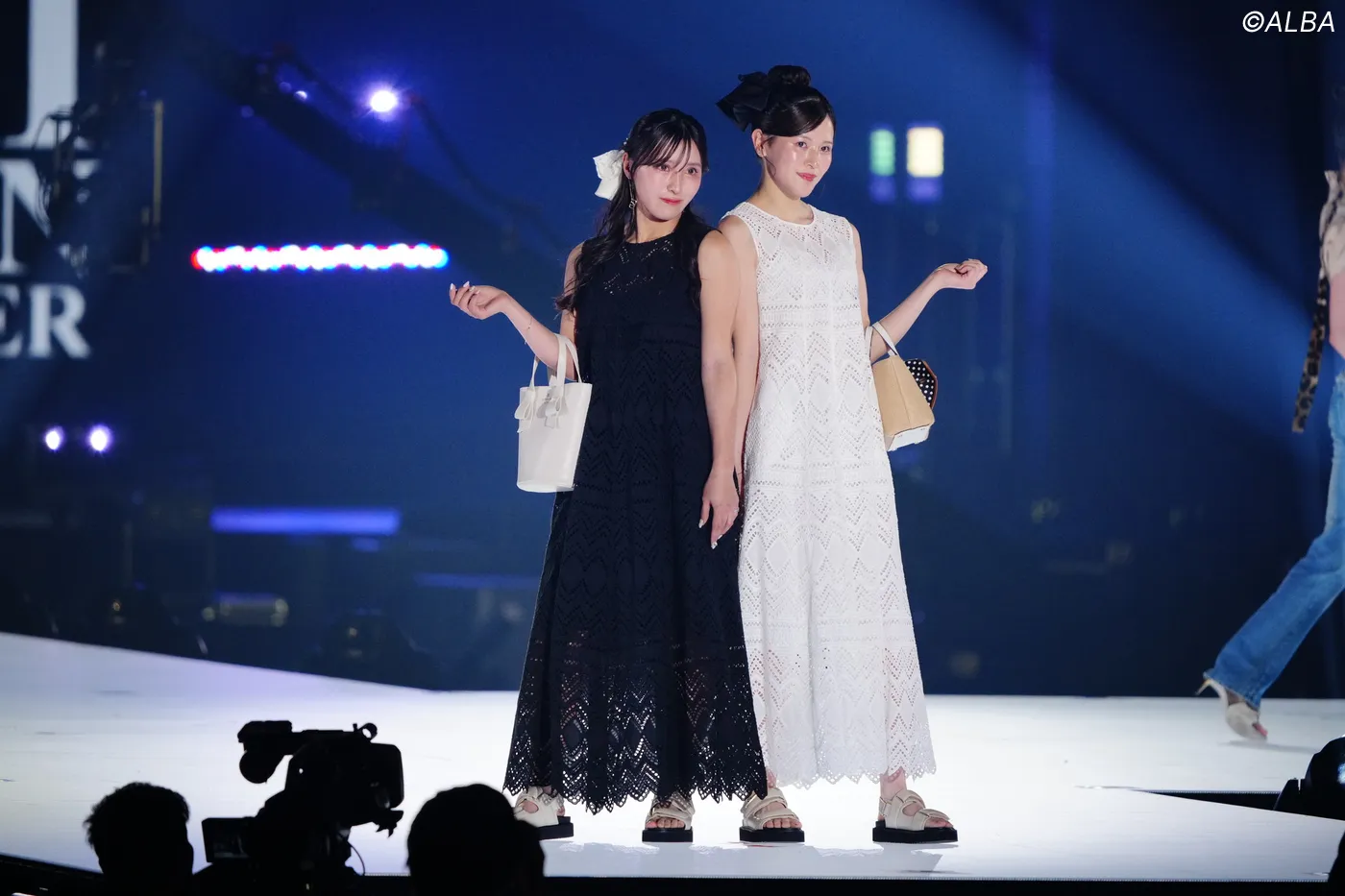 臼井麗香(左)と蘭世(右)がランウェイで競演 (撮影:鈴木祥)