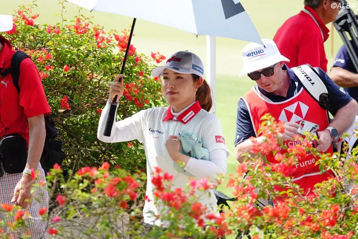 - <速報>古江彩佳、4打差逆転Vなるか 2オン2パットでパー発進