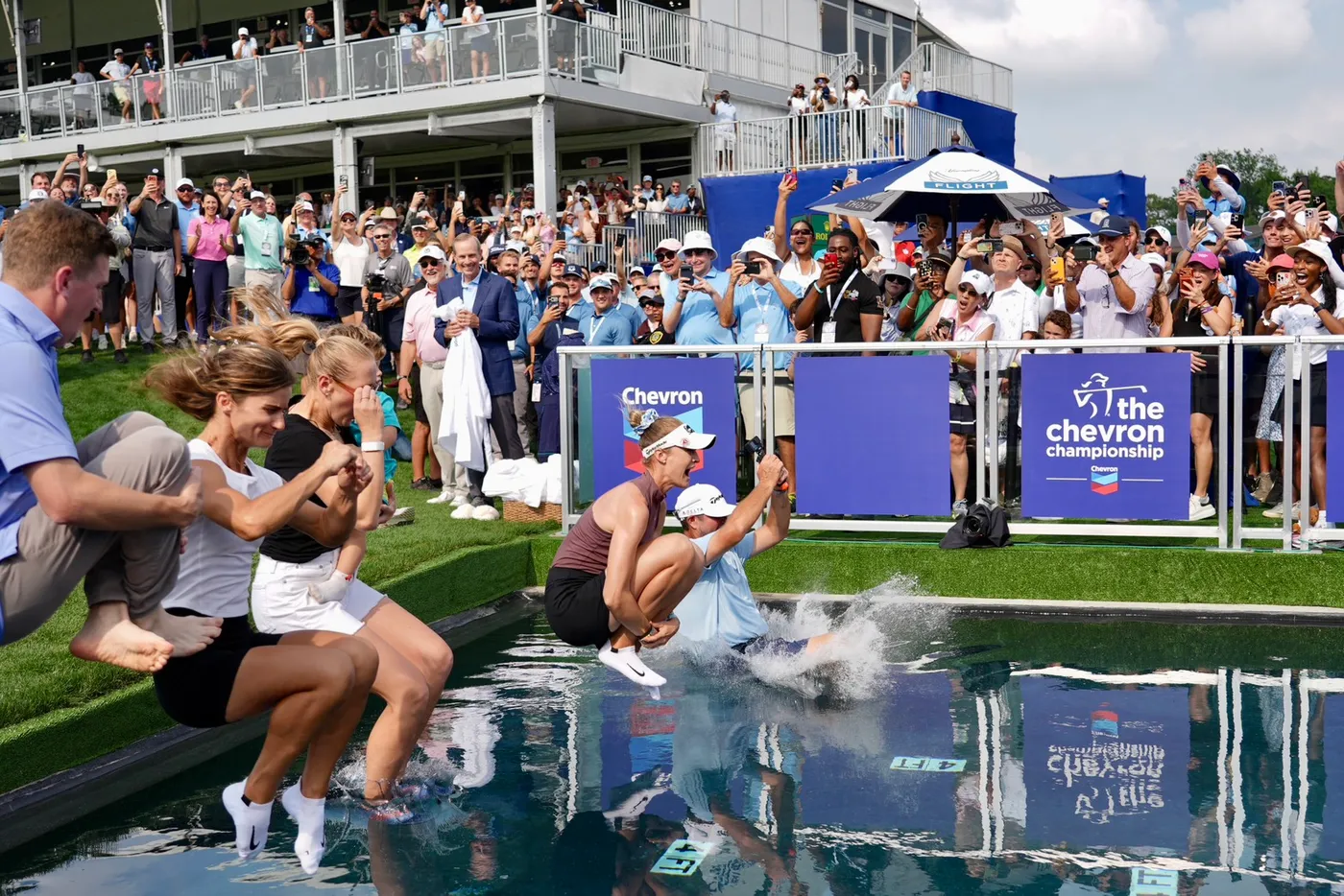 伝統は新コースでも継承! ネリー・コルダが姉、甥っ子らとともに“歓喜の池ダイブ”「ジェシカと一緒に飛び込めてよかった」