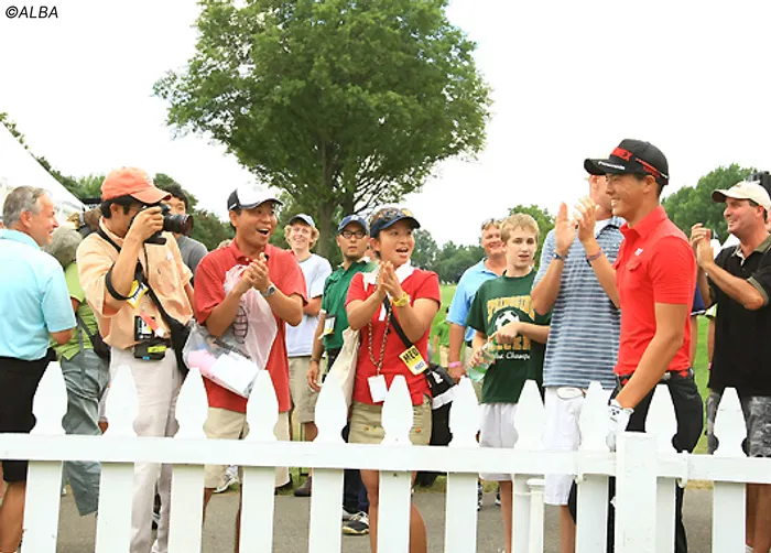 スーパーリカバリーに笑顔でグリーンへ向かう (撮影:福田文平)