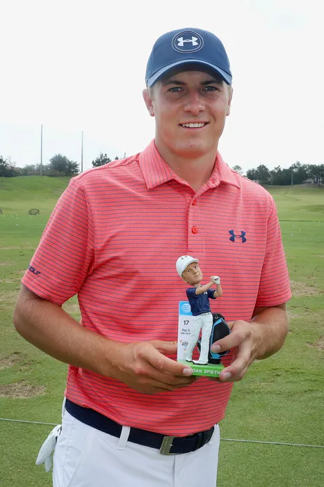 スタート前には自身のボブルヘッド人形を手に笑顔を見せたスピース 地元の期待に応えたい (撮影:GettyImages)