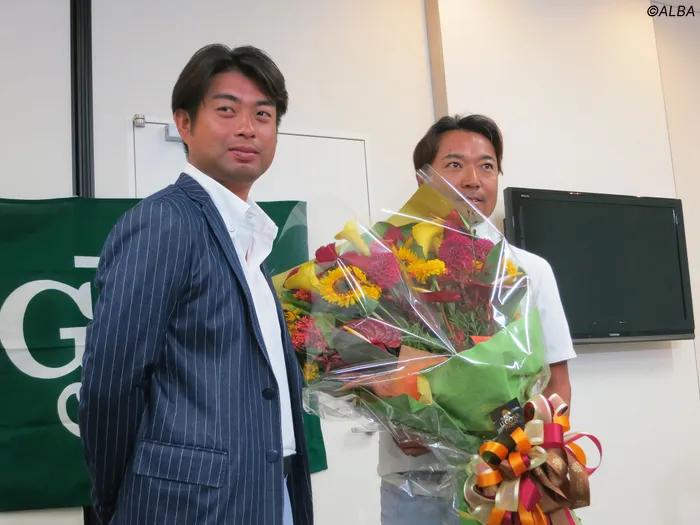 男子ゴルフ日本代表が帰国、片山が花束で隠したかったことは?