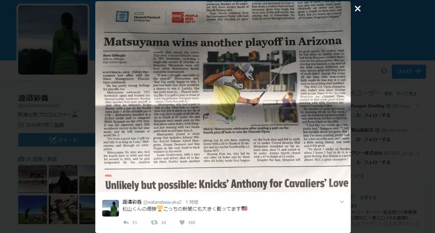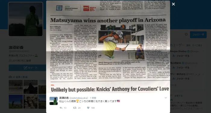 松山英樹の快挙に女子プロたちも興奮!?祝福のツイッター続々